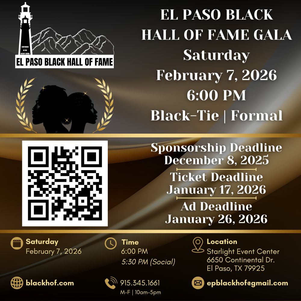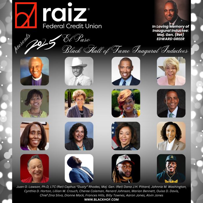 The El Paso Black Hall of Fame honors individuals and organizations – past and present who have made significant cultural, educational, economic, civic, and other contributions to the community. Inductees proudly embrace their Black identity, champion justice, and uplift Black culture throughout the borderland. Guided by the principles of Engagement, Empowerment, Economics, Education, and Equity, it recognizes those who lead with vision, preserve our legacy, celebrate our progress, and safeguard the future of our community. More than a celebration, the Hall of Fame stands as a powerful call to action encouraging unity, inspiring leadership, and advancing Black representation in El Paso. Read more…