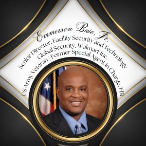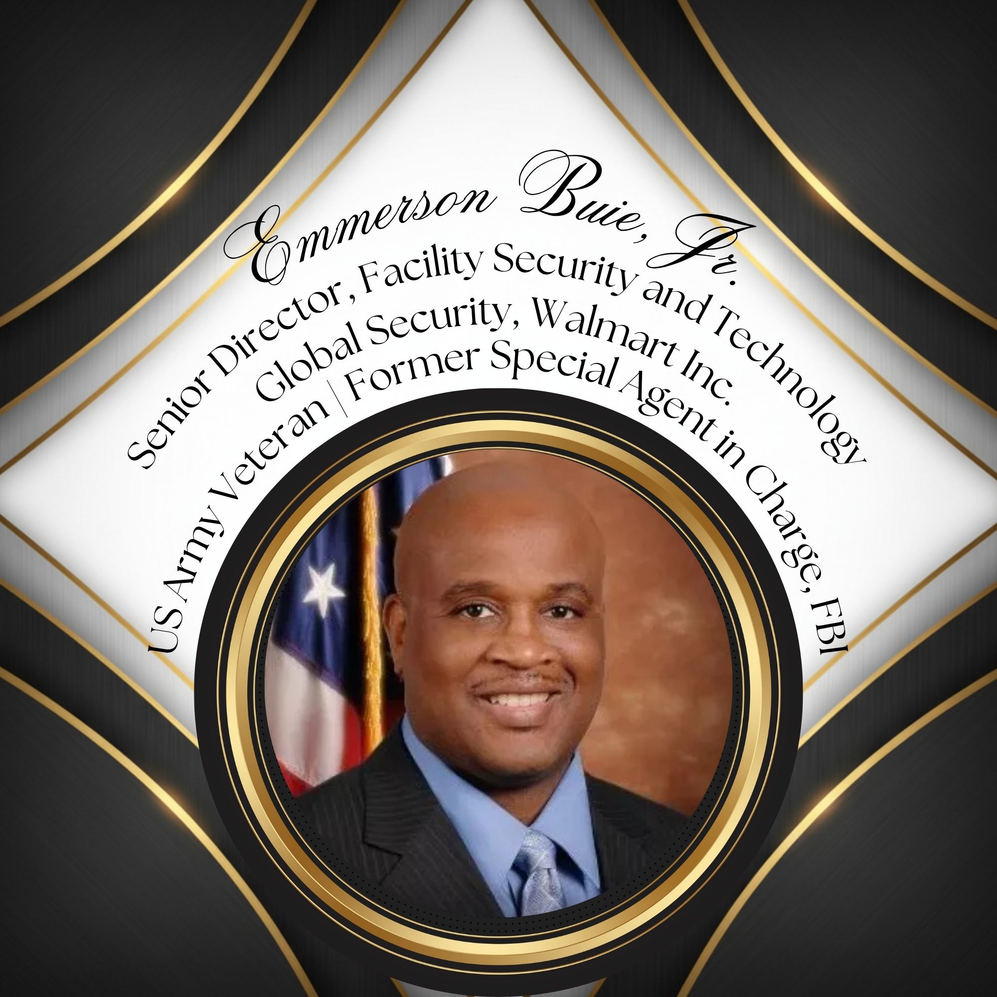 Emmerson Buie, Jr., is a Senior Director with Walmart Inc., Facility Security and Technology, Global Security. After retiring from the FBI in August 2022, Mr. Buie brought more than three decades of federal law enforcement and military experience to the private sector, continuing his commitment to public safety and organizational excellence.